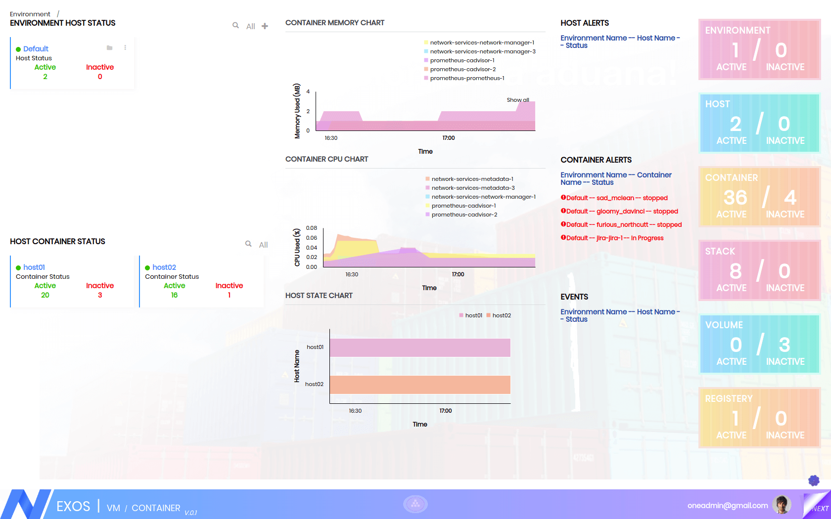 EXOS Container Dashboard provides a bird’s eye view of the Container Deployment of an Enterprise.