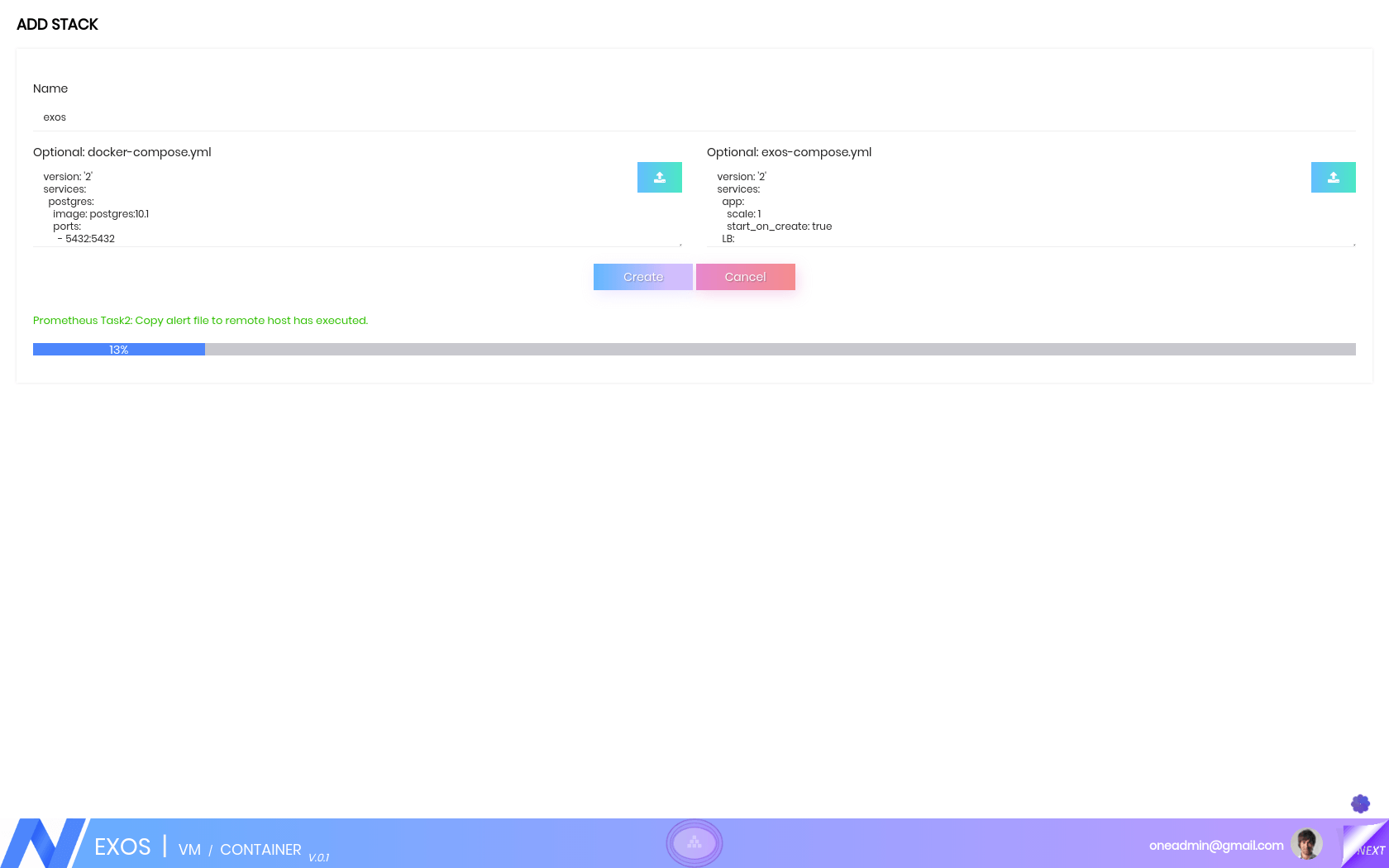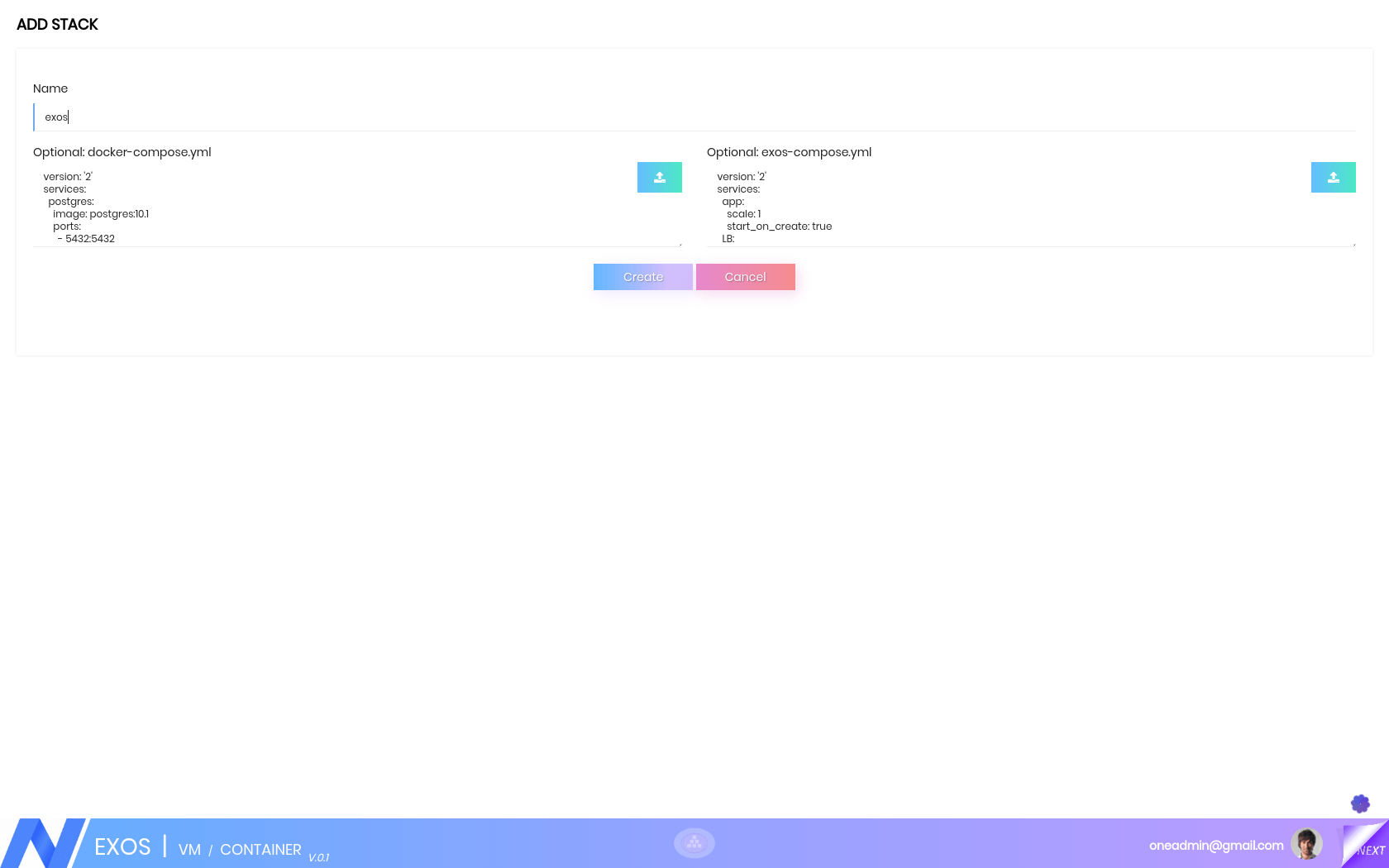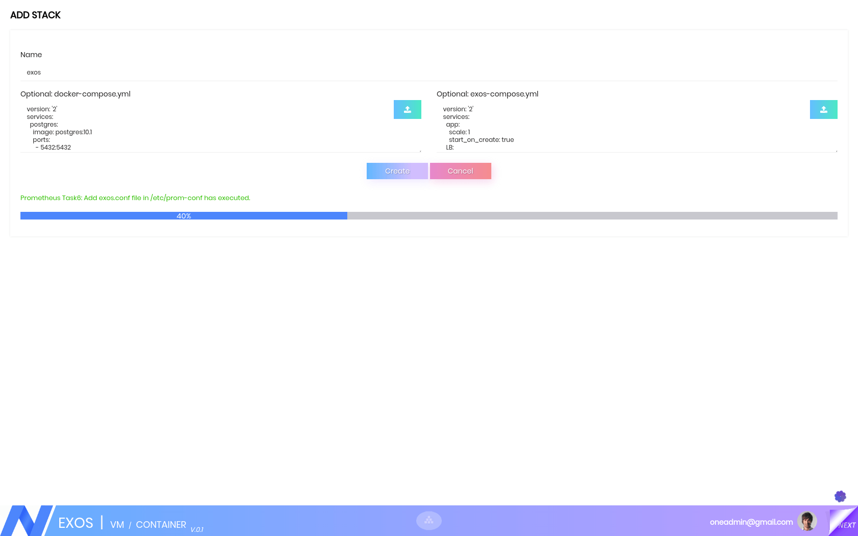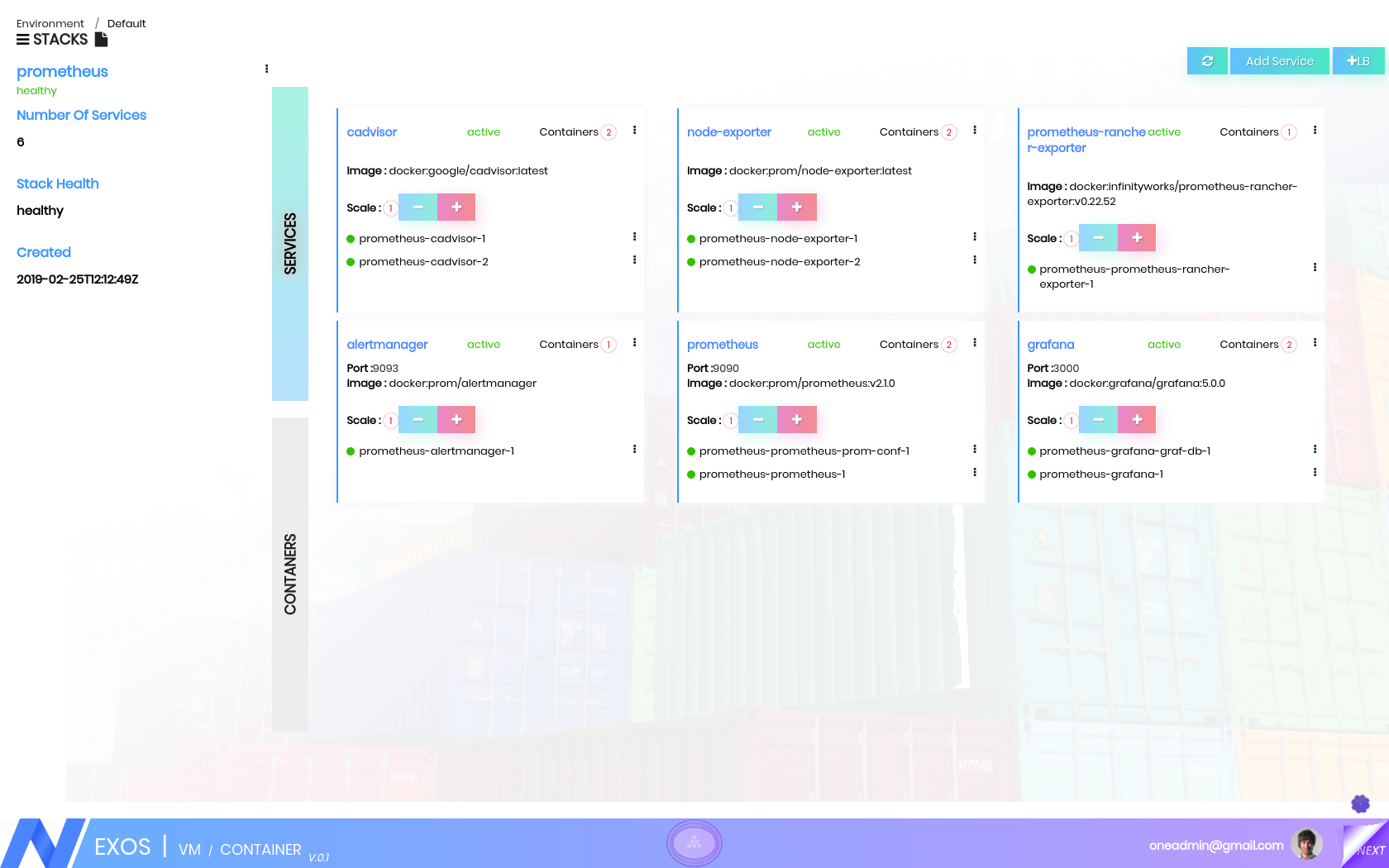 The EXOS Platform provides an option to define Application in terms of Docker-Compose format. An application is defined by a Docker-compose and an exos-compose file and can be deployed easily with the default configurations. The Stack will contain a set of Services (like Web Service, DB Service). Each Service contains one or more containers. The EXOS Container Platform will provide complete visibility at the Stack level, or at the service level abstraction or at the container level abstraction.